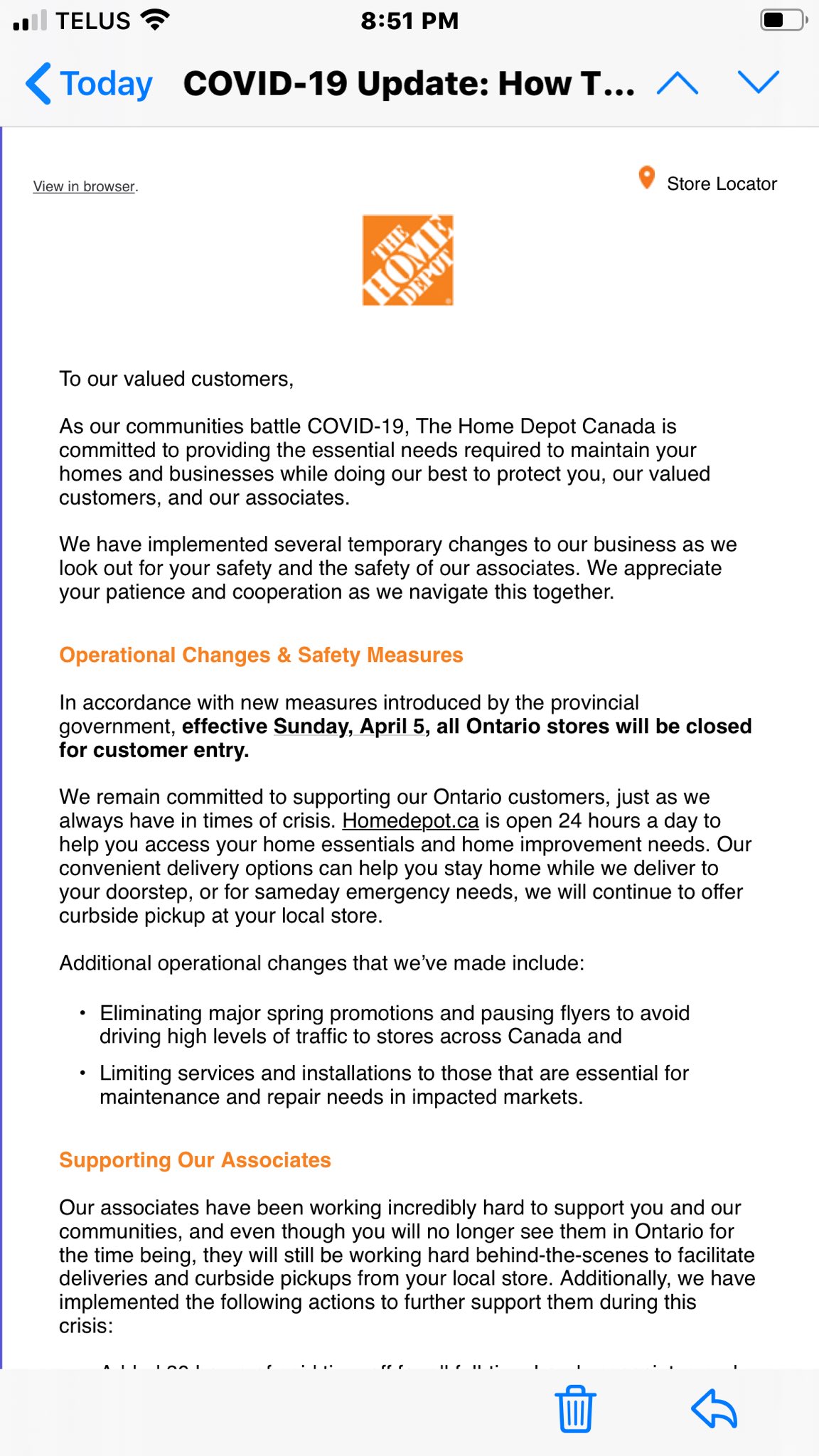 Home Depot And All Hardware Stores In Ontario Are Now Closed